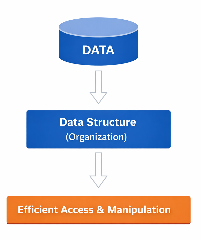 A Data Structure is a specialized way of organizing, storing, and managing data in memory so that it can be accessed and modified efficiently.