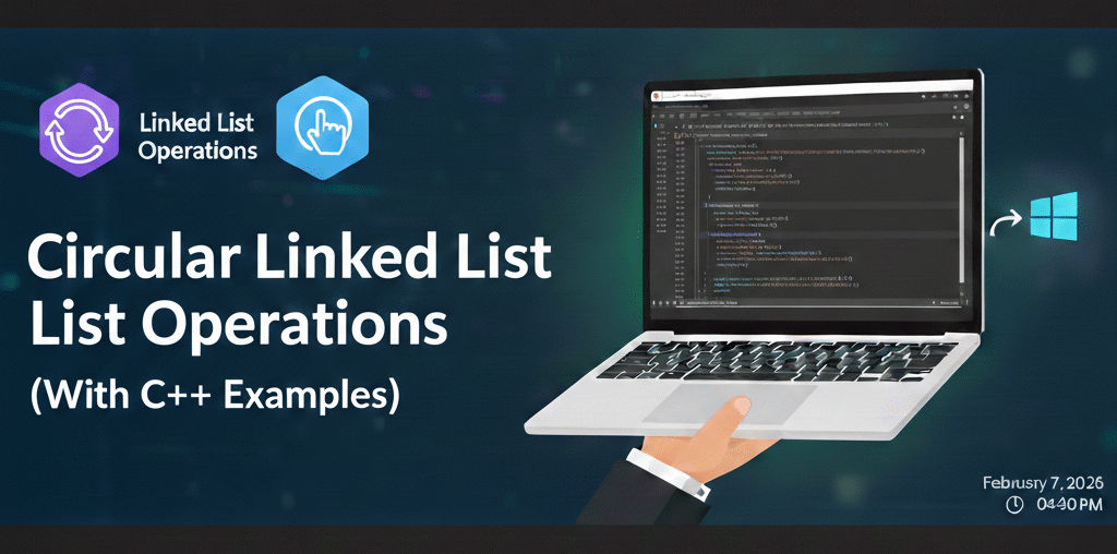 Circular Linked List A Circular Linked List (CLL) is a variation of the linked list in which the last node points back to the first node instead of NULL, forming a circular structure. Unlike linear linked lists, a circular linked list has no definite beginning or end. 📌 Definition A Circular Linked List is a … Continue reading Lesson 08: Circular Linked List (With C++ Examples)
