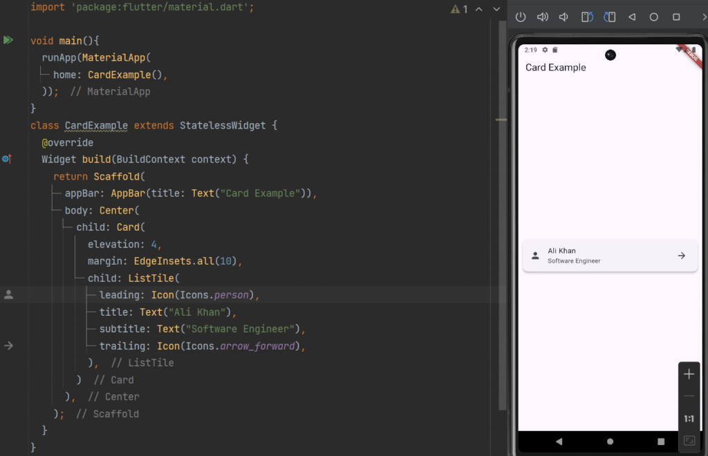 User Interface (UI) design plays a crucial role in mobile application success. In Flutter, building elegant and responsive UI is easy with powerful widgets like Card, ListTile, and ListView.