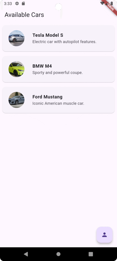 appBar: AppBar(title: const Text('Available Cars')),